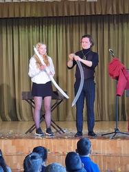 Melisa: «Я познакомилась с профессией иллюзиониста Данте. Его представление мне очень понравилось. Я узнала, что самый опасный фокус – это фокус с картами, а самый удивительный – когда фокусник засовывал шарик и салфетку в рот. Фокусы – это всегда интересно. Я хочу сказать спасибо фокуснику Данте за то, что он нашел время прийти в нашу школу».
