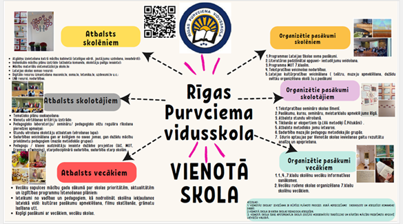 2024.gada 13.jūnijā LR Izglītības un zinātnes ministrijas rīkoja konferenci par vienotas skolas pieejas īstenošanas rezultātiem 2023./2024. mācību gadā “CEĻĀ UZ VIENOTU SKOLU”. Skolas pedagogi piedalījās vienā no konferences darbnīcām "Vienotas skolas ieviešanas procesa plānošana un vadība", ko vadīja Anita Pēterkopa, Rīgas valstspilsētas pašvaldības Izglītības, kultūras un sporta departamenta Izglītības pārvaldes Vispārējās izglītības skolu nodaļas vadītāja.