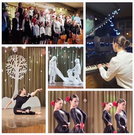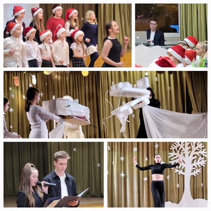 sākumskolas koris, ansamblis un vokālisti – Matvejs Vanags 4.b, Sofija Kakiašvili 10.a, Anfisa Tihonova 9.a un Darja Lopatenoka 7.c dziesmas piepildīja zāli ar Ziemassvētku noskaņām;