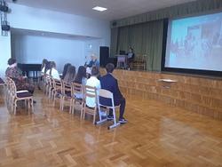 Skolēni bija sagatavojuši prezentācijas par partnerskolām, izspēlēja Latvijas izziņas spēli “Es mīlu Tevi, Latvija!”, izvēlējās projekta logo un ģenerēja idejas par iespējamo sadarbības pasākumu skolēniem “Par sportisku un brīvu Latviju!”.