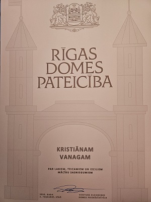 Rīgas domes pateicību par labiem, teicamiem un izciliem mācību sasniegumiem bija saņēmis arī mūsu 9.c klases skolēns Kristiāns Vanags. Kristiāns ne tikai labi mācās, piedalās olimpiādēs, bet ir arī atsaucīgs un izpalīdzīgs, prot mierīgi un argumentēti izteikt savas domas, ir principiāls, kulturāls un prot risināt konfliktsituācijas.