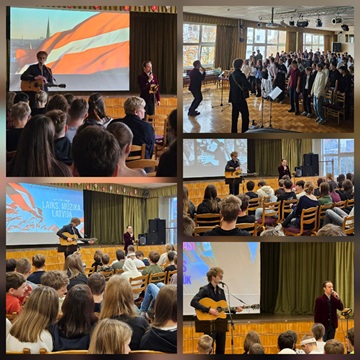 2025. gada 12. novembrī sākumskolas skolēniem, savukārt, 14. novembrī pamatskolas un vidusskolas skolēniem mūsu skolā norisinājās svētku pasākumi, kas veltīti Latvijas Proklamēšanas dienai. Uzstājās skolas dziedātāji — sākumskolas koris un koris “Madrigāls”, kā arī individuālie izpildītāji: solistes Amēlija Vasina un Sofija Kakiašvili, solists Matvejs Vanags, pianists Oļegs Dubovskis. Dziesmas un dzejas par dzimteni, tēvzemi, valodu, par mīlestību un cieņu pret savas zemes vēsturi radīja īpašu svētku noskaņu!
